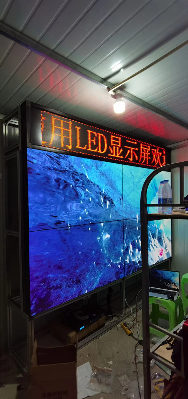 云南邵通永善县某工地监控室55寸3.5mm2X2+LED条屏+落地支架