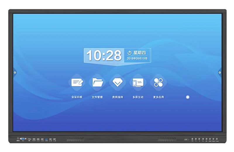 | 电子白板 | 内嵌电子白板软件;支持手势识别功能,当用户使用5CM*5CM大小以上物体如“手背”进行触摸时,系统自动识别为板擦功能,可对书写笔迹进行擦除功能;在连接网络下支持二维码分享,扫码带走 |
